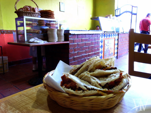 然後才到大教堂旁的小餐廳,牆上Menu標示9、10、12Pesos的單價,雖不懂內容是什麼,但價格不高,就吃這個吧!